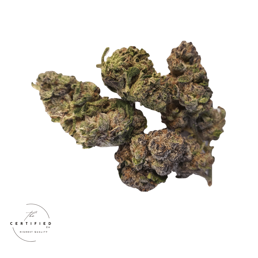 The Runtz Muffin high will have you feeling super lifted from start to finish, with euphoric effects that will have you soaring for hours on end. You’ll feel insanely happy with a sense of mental calm that has you feeling mentally at ease and without a care in the world. With these effects and its high 29% + average THC level, Runtz Muffin is often chosen to treat conditions such as chronic pain, depression or mood swings, chronic stress, hypertension and cramps or muscle spasms. This bud has dense oversized spade-shaped emerald-green nugs with deep purple leaves, thick orange hairs and a coating of chunky white crystal trichomes dripping with sweet sticky resin.